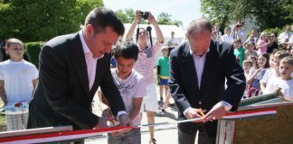 Az önkormányzat játszótér-felújítási programja keretében Láng Zsolt polgármester és Varga Mihály nemzetgazdasági miniszter jelenlétében felavatták a Marczibányit Téri Művelődési Központ új játszószereit.
